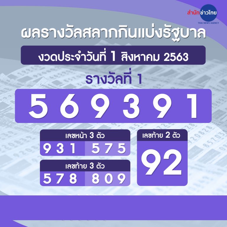 ผลรางวัลสลากกินแบ่งรัฐบาล งวดวันที่ 16 สิงหาคม 2563