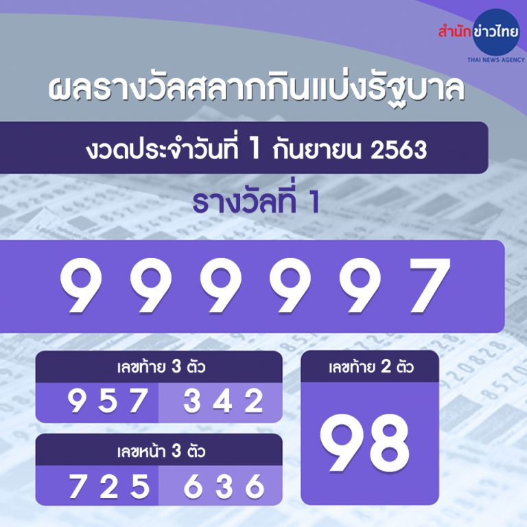 ผลรางวัลสลากกินแบ่งรัฐบาล งวดวันที่ 1 กันยายน 2563
