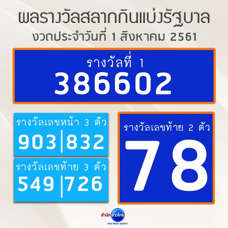 ผลรางวัลสลากกินแบ่งรัฐบาล งวดประจำวันที่ 16 สิงหาคม 2561