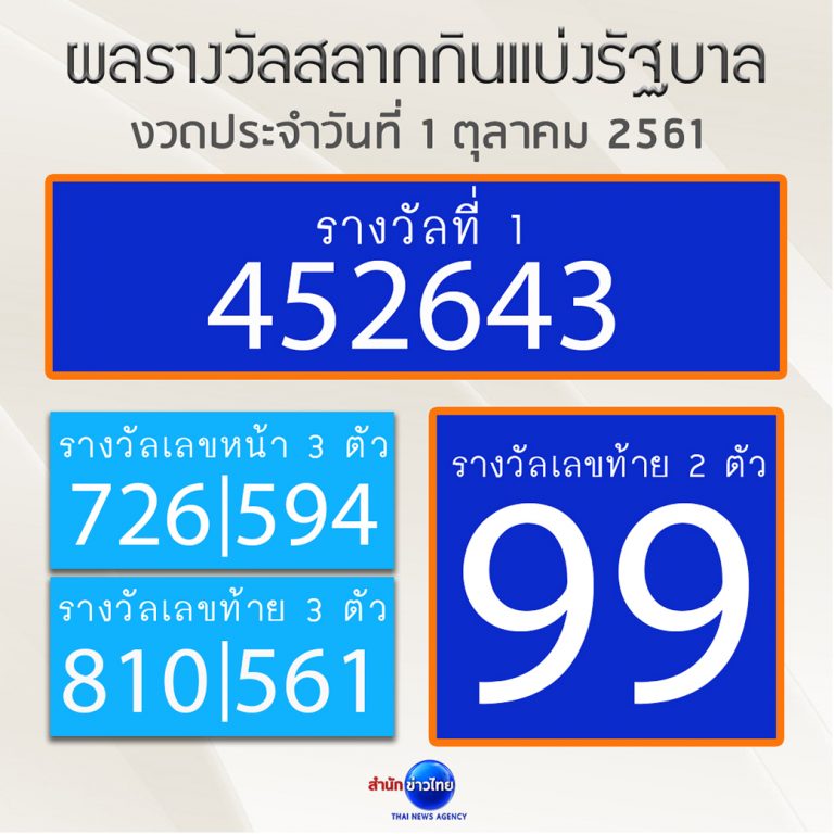 ผลรางวัลสลากกินแบ่งรัฐบาล งวดประจำวันที่ 1 พฤศจิกายน 2561