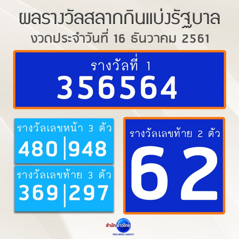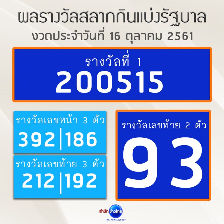 ผลรางวัลสลากกินแบ่งรัฐบาล งวดประจำวันที่ 16 ตุลาคม 2561