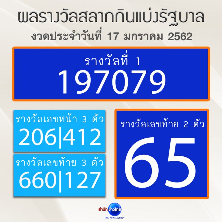 ผลการออกรางวัลสลากกินแบ่งรัฐบาล งวดประจำวันที่ 17 มกราคม 2562