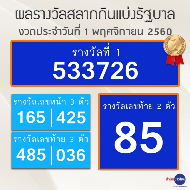 ผลสลากกินแบ่งรัฐบาล งวดวันที่ 1 พ.ย.60