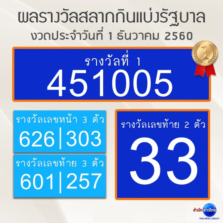 ผลรางวัลสลากกินแบ่งรัฐบาล งวดประจำวันที่ 1 ธันวาคม 2560