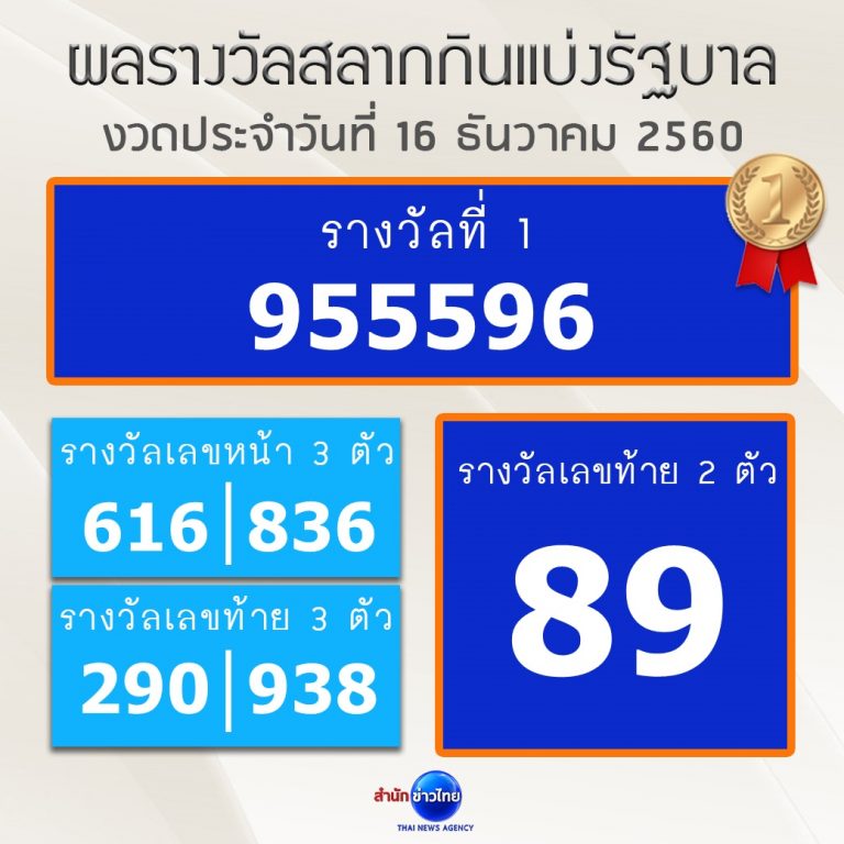 ผลรางวัลสลากกินแบ่งรัฐบาล งวดประจำวันที่ 16 ธันวาคม 2560