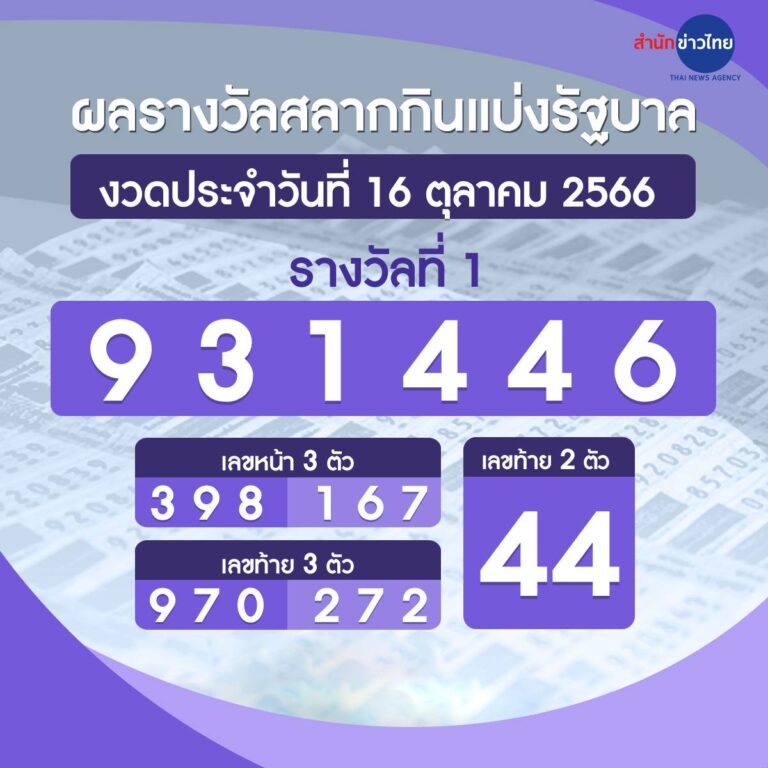 ผลรางวัลสลากกินแบ่งรัฐบาล งวดวันที่ 16 ตุลาคม 2566