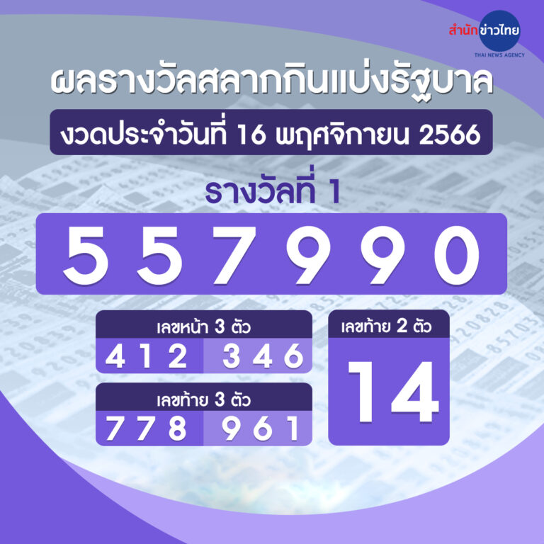 ผลรางวัลสลากกินแบ่งรัฐบาล งวดวันที่ 16 พฤศจิกายน 2566