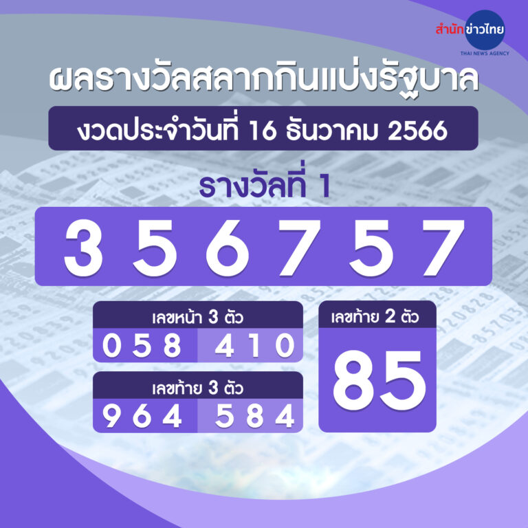 ผลรางวัลสลากกินแบ่งรัฐบาล งวดวันที่ 16 ธันวาคม 2566