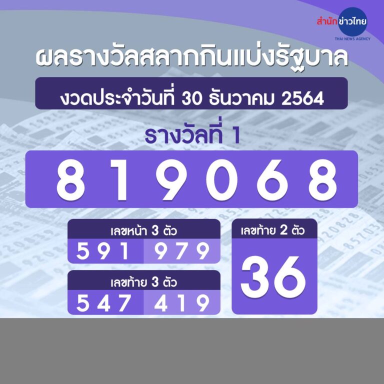 ผลรางวัลสลากกินแบ่งรัฐบาล งวดวันที่ 30 ธันวาคม 2564
