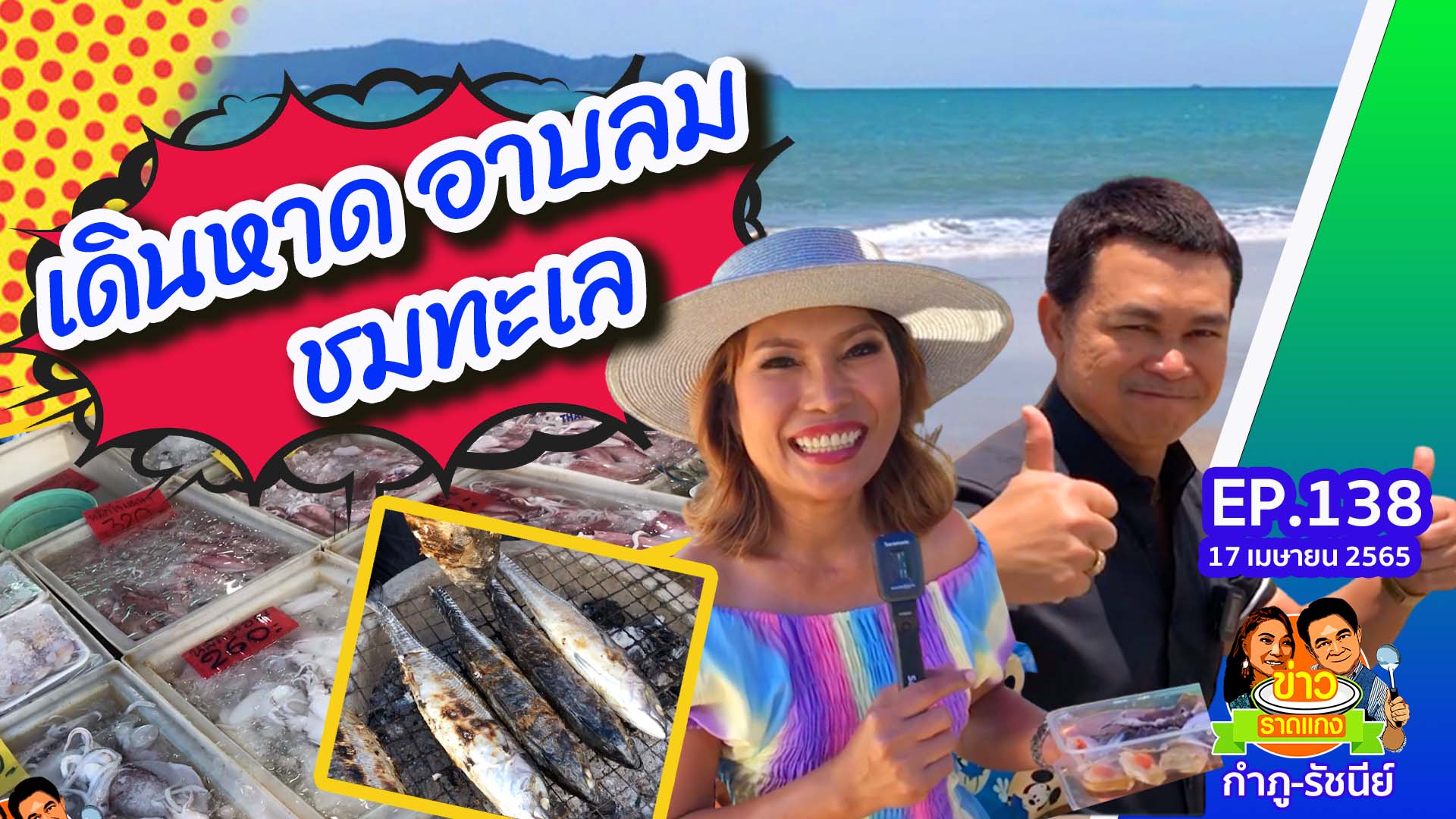 เดินหาด อาบลม ชมทะเล แวะคุยชาวบ้านลงอวนปลา อวนปู • อาหารทะเลสด ราคาไม่แพง ปลาแข้งไก่ปิ้ง ร้อยบาทขาดตัว หัวไม่ให้ – ปูม้า ปลาโม่ง ปลาลัง ปลาหางเหลือง กุ้งแชบ๊วย ปูดองน้ำปลา l ข่าวราดแกงกำภูรัชนีย์ EP138 | 17 เมษายน 2565