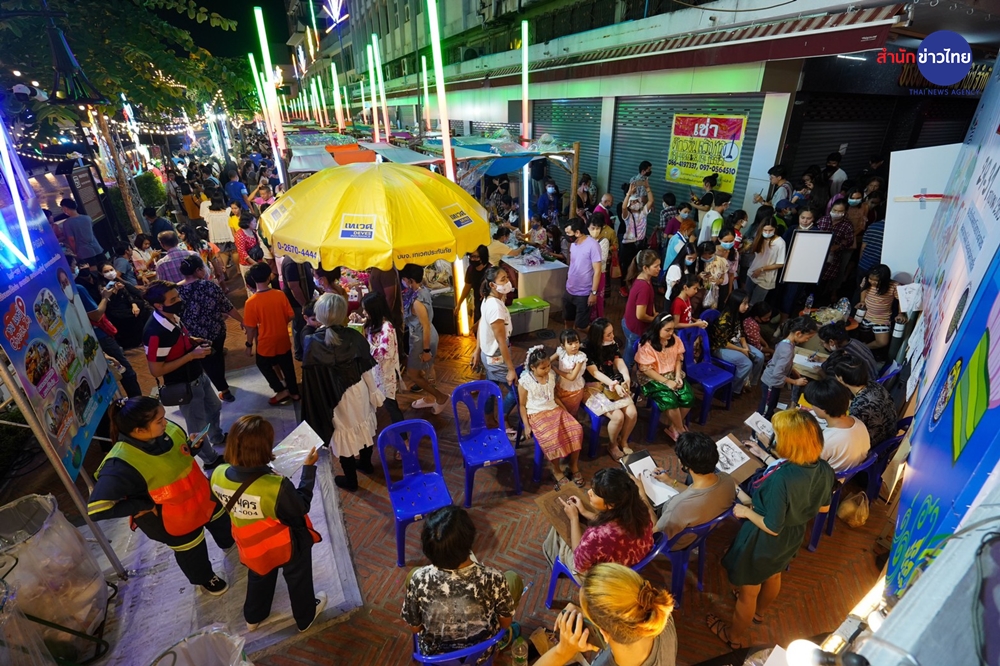 ความพิเศษของกิจกรรมลอยกระทงที่นี่ นอกจากจุดลอยกระทงที่ปลอดภัยและสะดวกแล้ว ตลอดริมคลองโอ่งอ่างตั้งแต่ บริเวณสะพานหัน สะพานภานุพันธ์ ถึงสะพานดำรงสถิตย์ มีถนนคนเดิน ออกร้านค้าจำหน่ายอาหาร สินค้า ของดีของเขต กว่า 261 ร้านค้าให้เลือกซื้อ ยังมีศิลปะสตรีทอาร์ต กราฟฟิตี้ ผลงานภาพวาดบนกำแพง ที่สะท้อนอัตลักษณ์และวัฒนธรรมของชุมชน ตลอดทางเดิน รวมระยะทาง 750 เมตร ซึ่งเชื่อมระหว่างเขต คือ ฝั่งพระนคร และฝั่งสัมพันธวงศ์ ให้ประชาชนได้มาแชะภาพเป็นที่ระลึก สร้างสีสันและความประทับใจอย่างมาก ซึ่งเป็นการเปิดตัวครั้งแรกในงานลอยกระทงปีนี้ ซึ่งงานมีมาตั้งแต่ 29 ตุลาคม ที่ผ่านมาและวันนี้ 31 ต.ค. เป็นวันสุดท้าย จัดยาวไปถึง เวลา 24.00 น.
