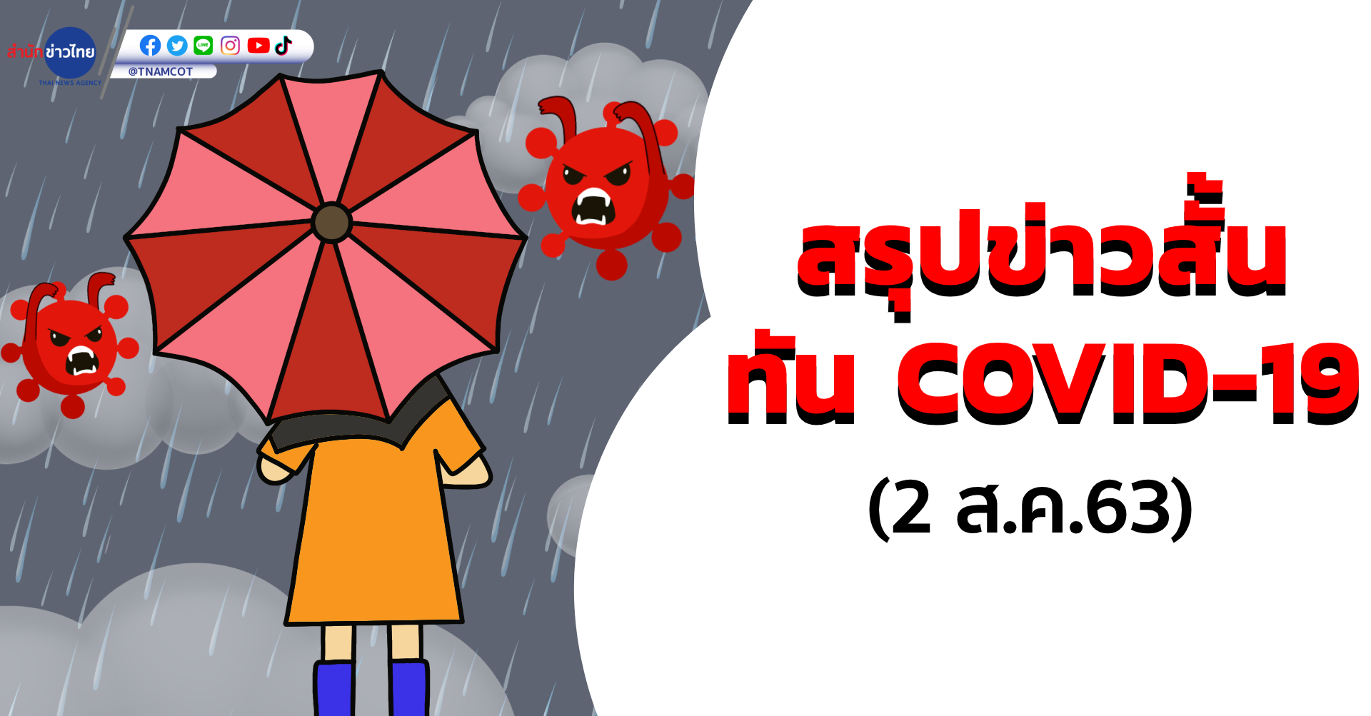 สำนักข่าวไทย 2 ส.ค.- ศบค.แถลงสถานการณ์โควิด-19 ประจำวันพบผู้ป่วยใหม่ 5 ราย มาจากต่างประเทศทั้งหมด โดย 1 ในนี้เคยมีประวัติป่วยโควิด-19 มาเเล้วเมื่อปลายเดือนพ.ค.63