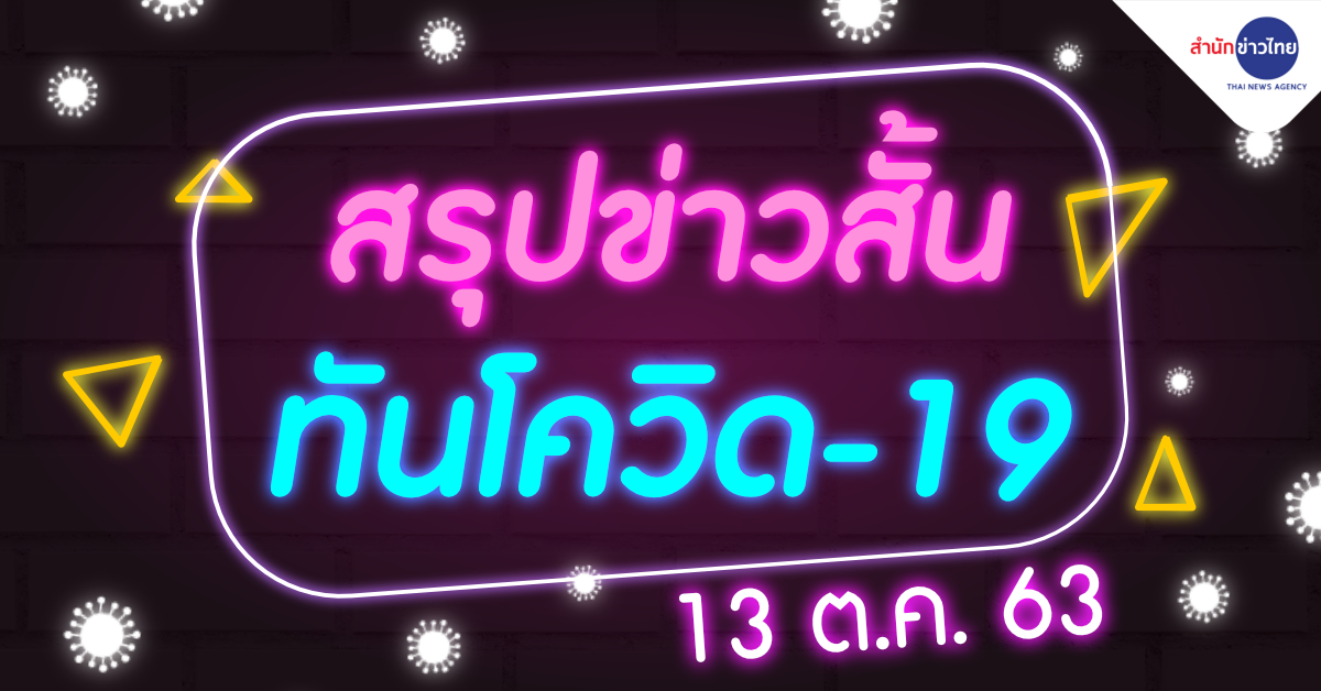 สำนักข่าวไทย 13 ต.ค. 63 – สถานการณ์การติดเชื้อ COVID-19 ประเทศไทย มีผู้ป่วยรายใหม่ 2 ราย ผู้ป่วยยืนยันสะสม 3,643 ราย หายป่วยแล้ว 3,457 ราย เสียชีวิตสะสม 59 ราย