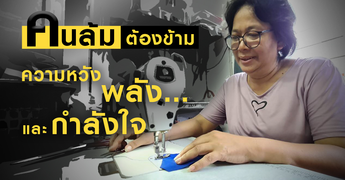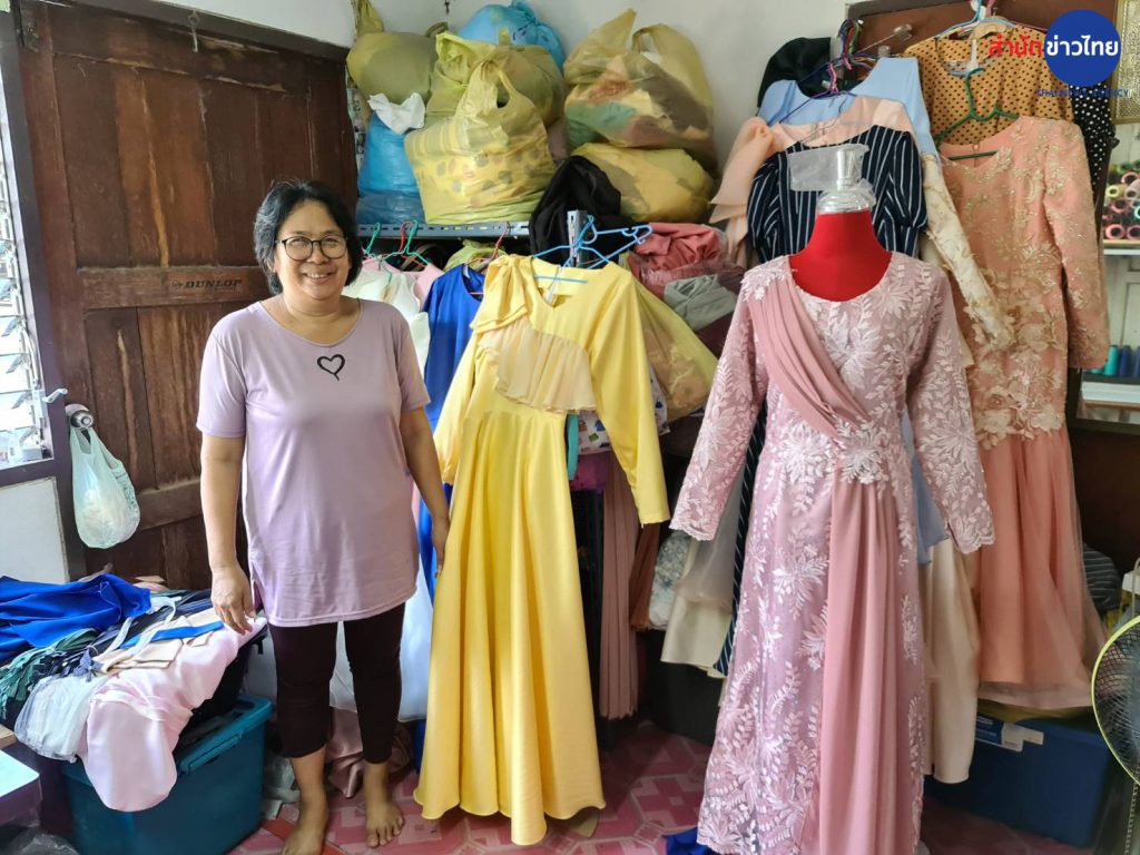 “รายได้จากเดือนละ 18,000 ช่วงโควิด-19 เหลือแค่ 3,000 บาท แต่ทุกเดือนมีค่าใช้จ่ายหมื่นกว่าบาท เป็นค่าน้ำค่าไฟ ค่ากับข้าว ลูกไปโรงเรียน ต้องดูแลพี่สะใภ้ที่เดินไม่ได้ และใช้หนี้ที่โดนเพื่อนโกงไป ตัวเองก็เป็นโรคความดัน ไขมัน โรคไต และต้องผ่อนเงินกู้กับธนาคารออมสินอีกเดือนละ 1,700 บาทเพราะกู้เงิน 50,000 บาทมาซื้อจักร ผ้าและอุปกรณ์การตัดเย็บ โชคดีธนาคารผ่อนผันให้ และได้บัตรสวัสดิการแห่งรัฐมาช่วยซื้อข้าวสารกรอกหม้อ”