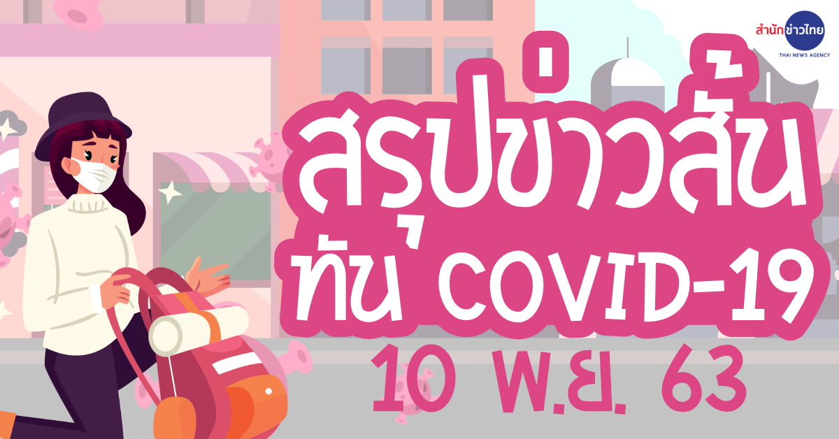 สำนักข่าวไทย 10 พ.ย. 63 – สถานการณ์การติดเชื้อ COVID-19 ประเทศไทย พบผู้ป่วยรายใหม่ 4 ราย ผู้ป่วยยืนยันสะสม 3,844 ราย หายป่วยแล้ว 3,670 ราย เสียชีวิตสะสม 60 ราย