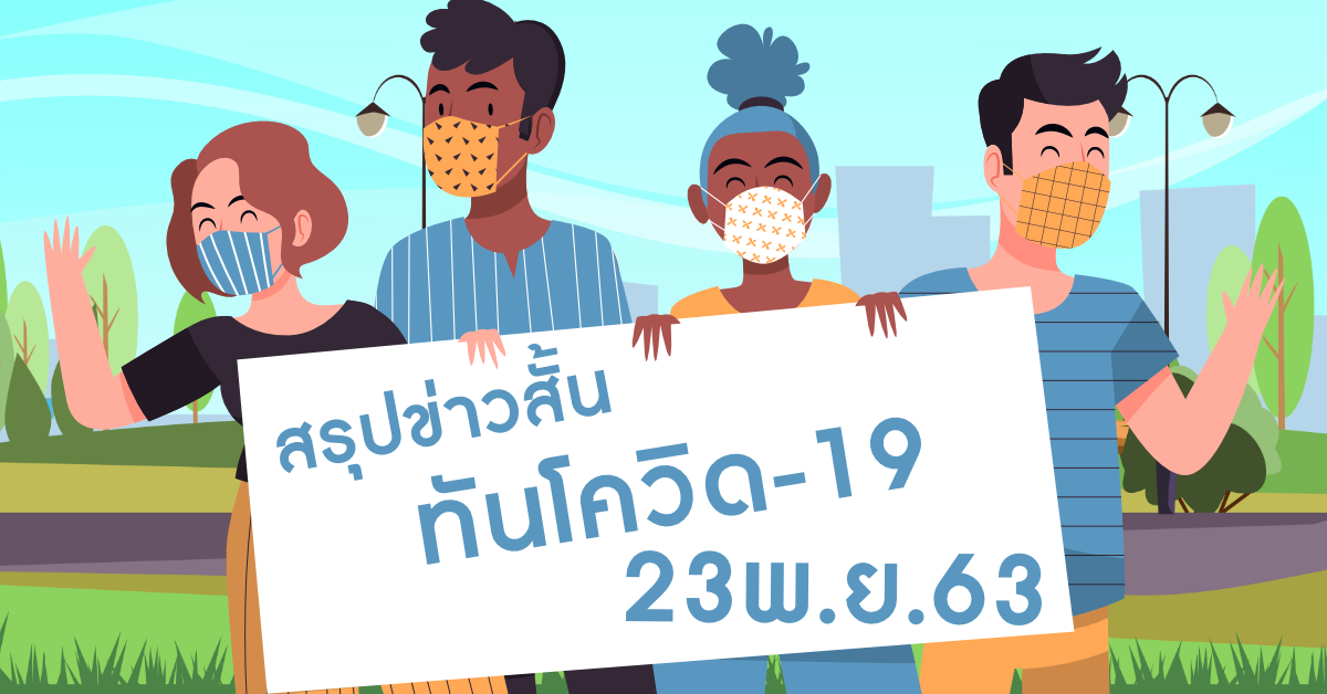 สำนักข่าวไทย 23 พ.ย. 63 – สถานการณ์การติดเชื้อ COVID-19 ประเทศไทย มีผู้ป่วยรายใหม่ 7 ราย ผู้ป่วยยืนยันสะสม 3,920 ราย หายป่วยแล้ว 3,766 ราย เสียชีวิตสะสม 60 ราย