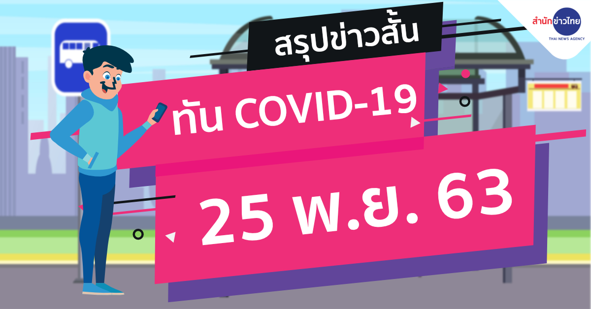 สำนักข่าวไทย 25 พ.ย. 63 – สถานการณ์การติดเชื้อ COVID-19 ประเทศไทย มีผู้ป่วยรายใหม่ 4 ราย ผู้ป่วยยืนยันสะสม 3,926 ราย หายป่วยแล้ว 3,780 ราย เสียชีวิตสะสม 60 ราย