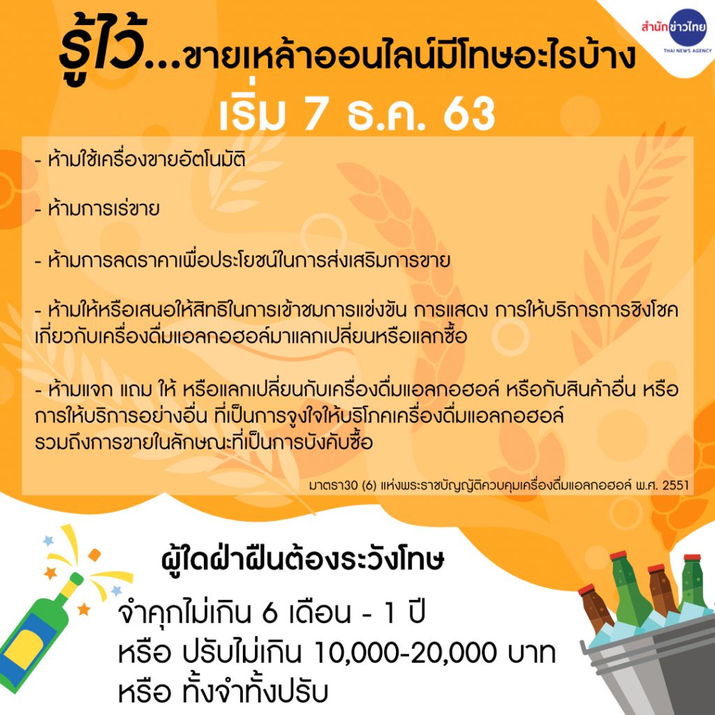 ประกาศสำนักนายกรัฐมนตรี เรื่อง ห้ามขายเครื่องแอลกอฮอล์โดยวิธีการหรือในลักษณะการขายทางอิเล็ทรอนิกส์ พ.ศ. 2563 โดยอาศัยอำนาจตามความในมาตรา4และมาตรา30(6)แห่งพระราชบัญญัติควบคุมเครื่องดื่มแอลกอฮอล์พ.ศ.2551 นายกรัฐมนตรีโดยคำแนะนำของคณะกรรมการนโยบายเครื่องดื่มแอลกอฮอล์แห่งชาติจึงออกประกาศไว้ดังต่อไปนี้