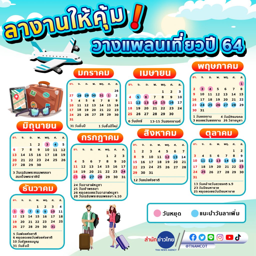 30 ธ.ค.- ปีหน้า 2564 จะไปเที่ยวที่ไหนดีนะ หยุดยาวช่วงไหนถึงจะคุ้ม ต้องลางานช่วงไหนถึงจะเริ่ด เจ้านายไม่ว่า แถมไม่โดนไล่ออกด้วย!