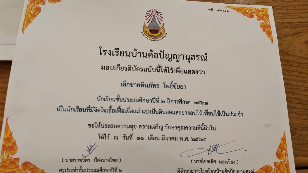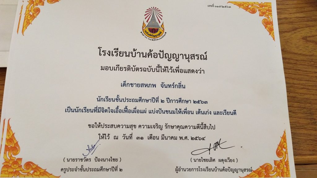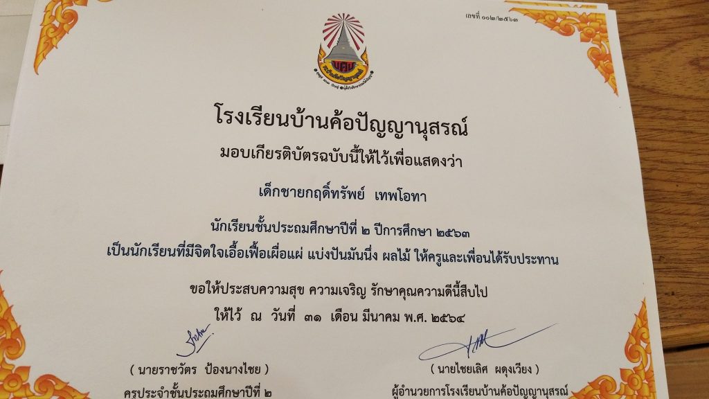 31 มี.ค.-ชื่นชม! โลกออนไลน์แห่แชร์เรื่องราวสุดน่ารัก โรงเรียนบัานค้อ ปัญญานุสรณ์ มอบเกียรติบัตรให้กับนักเรียนที่ทำความดีในรูปแบบต่างๆ ไม่ว่าจะเป็น แบ่งปันขนมให้เพื่อน ตั้งใจทำงาน เสียงเพราะ รักสัตว์ ลายมือสวย กล้าแสดงออก แบ่งปันมันนึ่ง เอื้อเฟื้อเผื่อแผ่ แบ่งปันยางลบ ดินสอ รู้จักพูดคำว่าขอโทษเมื่อทำผิด รักครอบครัว หรือแม้กระทั่งขุดปูนาเก่ง