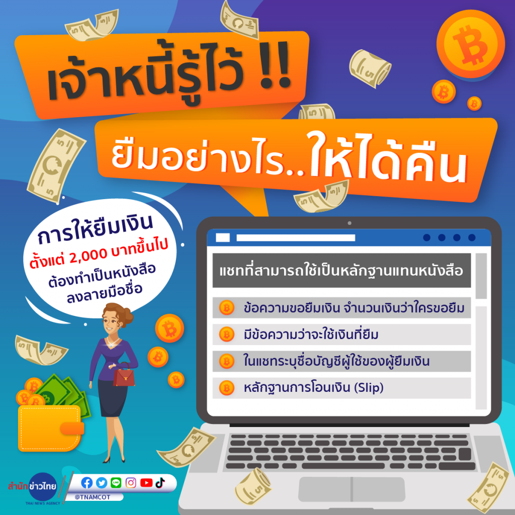 สำนักข่าวไทย 29 ก.ค.- รู้หรือไม่! แชทยืมเงิน ถือเป็นสัญญาและหลักฐานการกู้ยืมเงิน และใช้เป็นหลักฐานการฟ้องคดีได้