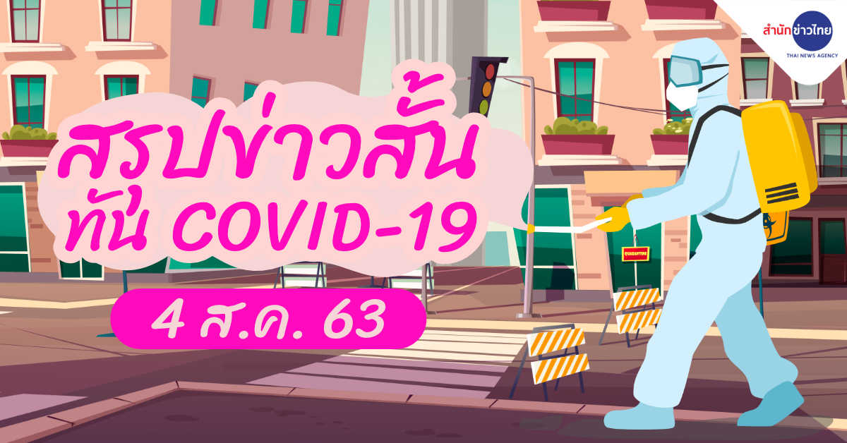 สำนักข่าวไทย 4 ส.ค. 63 – สถานการณ์โควิด-19 สถานการณ์โควิด-19 ไทยป่วยเพิ่ม 1 ราย ผู้ป่วยยืนยันสะสม 3,321 ราย หายป่วยแล้ว 3,142 ราย เสียชีวิตสะสม 58 ราย