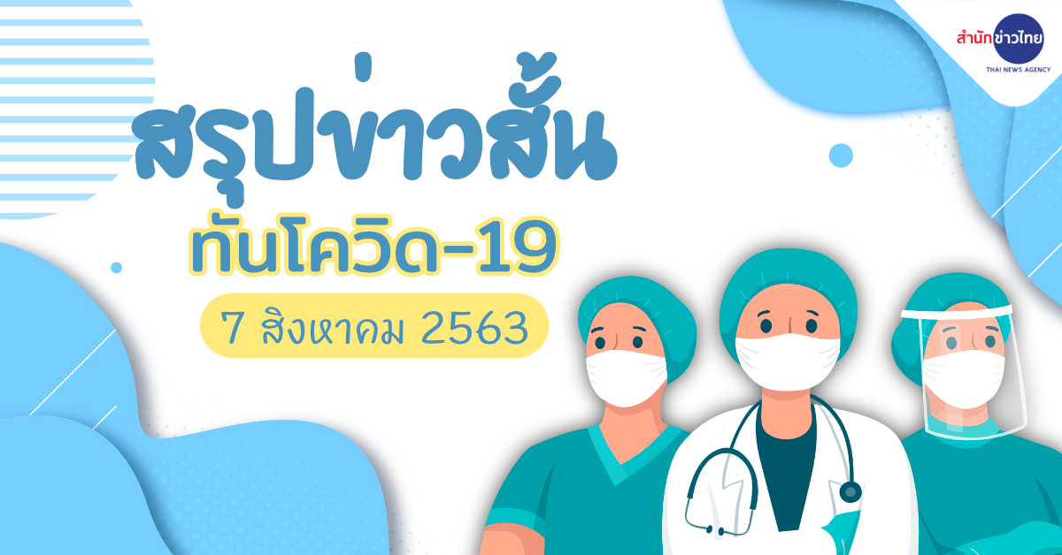 สำนักข่าวไทย 7 ส.ค. 63 – สถานการณ์การติดเชื้อ COVID-19 ในประเทศไทยพบผู้ป่วยรายใหม่ 15 ราย เป็นคนไทยเดินทางมาจากต่างประเทศ เข้าพัก State Quarantine ผู้ป่วยยืนยันสะสม 3,345 ราย หายป่วยแล้ว 3,148 ราย เสียชีวิตสะสม 58 ราย