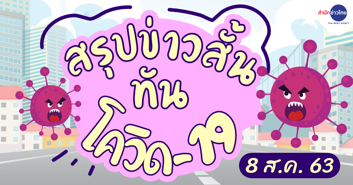 สำนักข่าวไทย 8 ส.ค. 63 – สถานการณ์การติดเชื้อ COVID-19 ในประเทศไทยพบผู้ป่วยรายใหม่ 3 ราย เป็นคนไทยเดินทางมาจากซาอุฯ-อินโดนีเซีย และเข้าพัก State Quarantine ผู้ป่วยยืนยันสะสม 3,348 ราย หายป่วยแล้ว 3,150 ราย เสียชีวิตสะสม 58 ราย