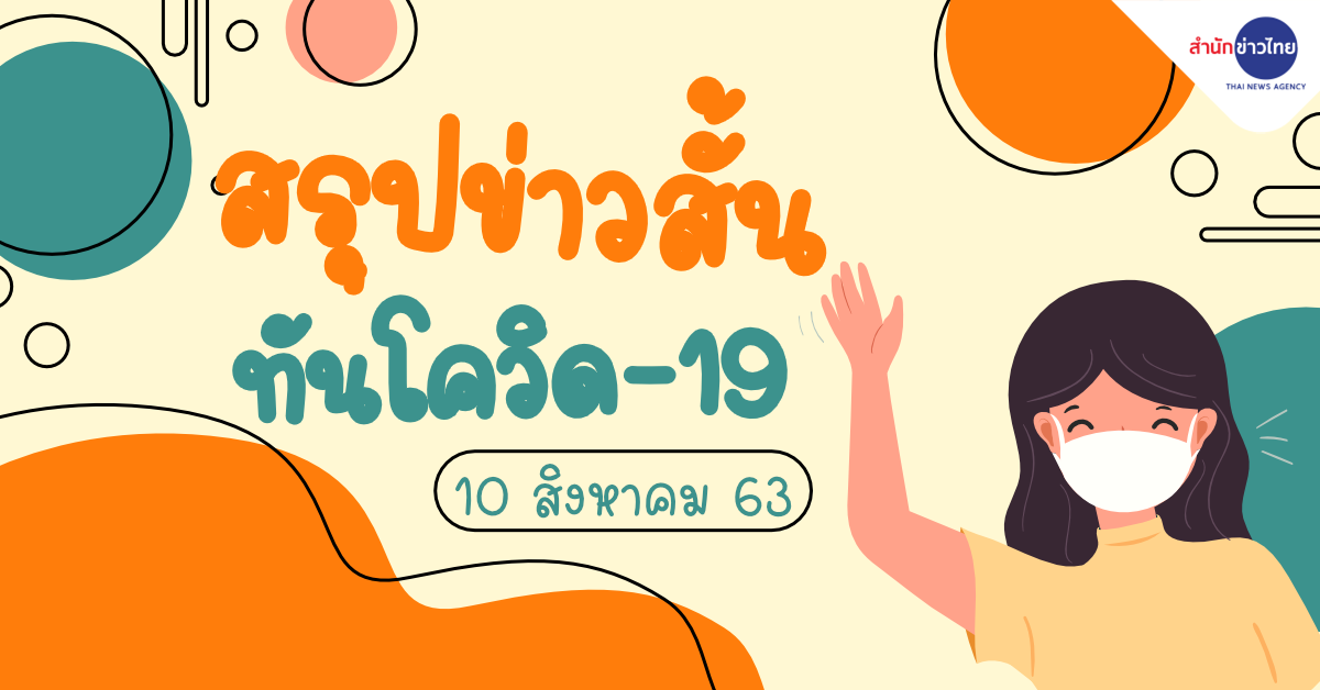 สำนักข่าวไทย 10 ส.ค. 63 – สถานการณ์การติดเชื้อ COVID-19 ในประเทศไทยไม่พบผู้ป่วยรายใหม่ ผู้ป่วยยืนยันสะสม 3,351 ราย หายป่วยแล้ว 3,160 ราย เสียชีวิตสะสม 58 ราย