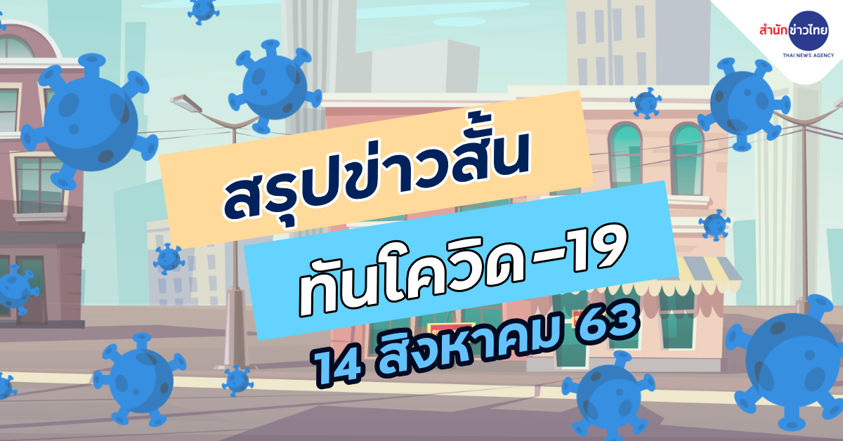 สำนักข่าวไทย 14 ส.ค. 63 – สถานการณ์การติดเชื้อ COVID-19 ในประเทศไทยพบผู้ป่วยรายใหม่ 17 ราย มาจากต่างประเทศและเข้า State Quarantine ผู้ป่วยยืนยันสะสม 3,376 ราย หายป่วยแล้ว 3,173 ราย เสียชีวิตสะสม 58 ราย