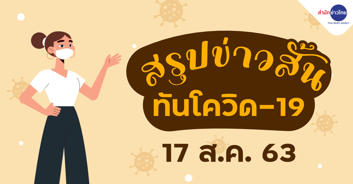 สำนักข่าวไทย 17 ส.ค. 63 – สถานการณ์การติดเชื้อ COVID-19 ในประเทศไทย พบผู้ป่วยรายใหม่ 1 ราย ผู้ป่วยยืนยันสะสมอยู่ที่ 3,378 ราย หายป่วยแล้ว 3,194 ราย เสียชีวิตสะสม 58 ราย