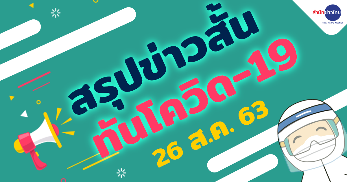 สำนักข่าวไทย 26 ส.ค. 63 – สถานการณ์การติดเชื้อ COVID-19 ประเทศไทยพบ ผู้ป่วยรายใหม่ 1 ราย มาจากอินเดียและเข้า State Quarantine ผู้ป่วยยืนยันสะสม 3,403 ราย หายป่วยแล้ว 3,237 ราย เสียชีวิตสะสม 58 ราย