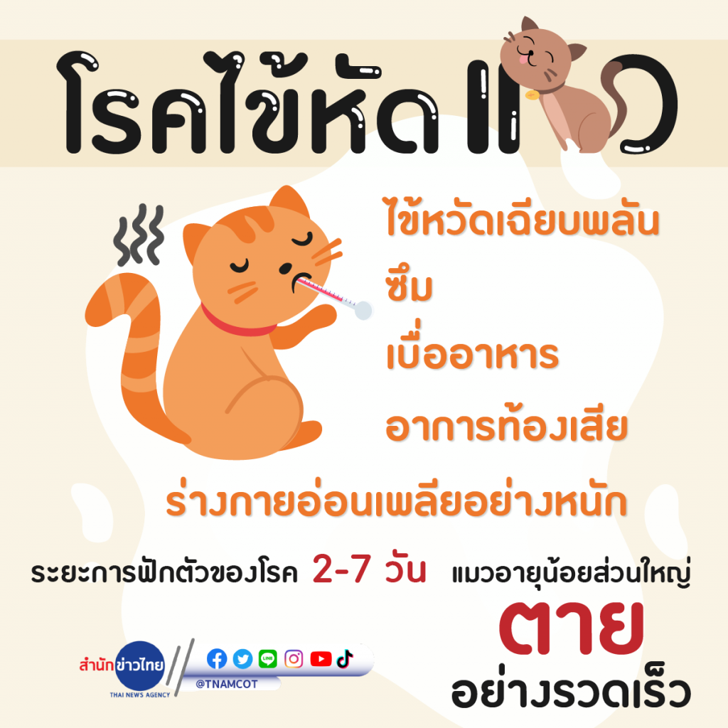 สำนักข่าวไทย 27 ส.ค.- หลังจากที่มีข่าวคราวเกี่ยวกับ “โรคไข้หัดแมว” ระบาดจนมีแมวล้มตายที่ จังหวัด เพชรบูรณ์ ทาสแมวทั้งหลายอาจจะกำลังกังวลใช่หรือไม่? ว่าเจ้าเหมียวสุดที่รักของเรามีอาการ หรือว่าเป็นโรคไข้หัดแมวหรือไม่ เราจะพาทุกคนมาทำความรู้จักกับโรคไข้หัดแมวกัน
