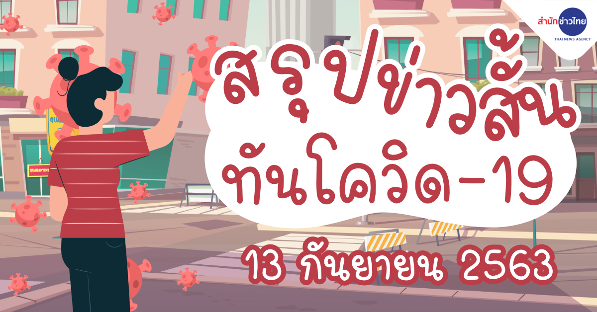 สำนักข่าวไทย 13 ก.ย. – สถานการณ์ติดเชื้อ COVID-19 ประเทศไทย พบผู้ป่วยรายใหม่ 7 ราย ผู้ป่วยยืนยันสะสม 3,473 ราย หายป่วยแล้ว 3,312 ราย เสียชีวิตสะสม 58 ราย