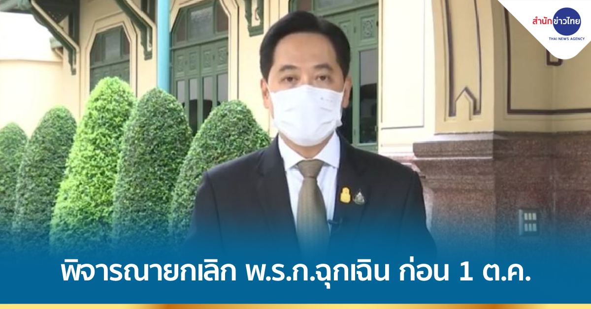 ทำเนียบรัฐบาล 22 ส.ค .-โฆษกรัฐบาล เผย ศบค.จะพิจารณาเรื่องการยกเลิกพ.ร.ก.ฉุกเฉินก่อน 1 ต.ค. ย้ำต้องประเมินสถานการณ์-ความเสี่ยงที่เกิดขึ้นช่วงเปลี่ยนผ่าน ต้องมั่นใจว่าจะไม่เกิดวิกฤติและความเสียหายในมิติต่างๆ ขึ้นอีก