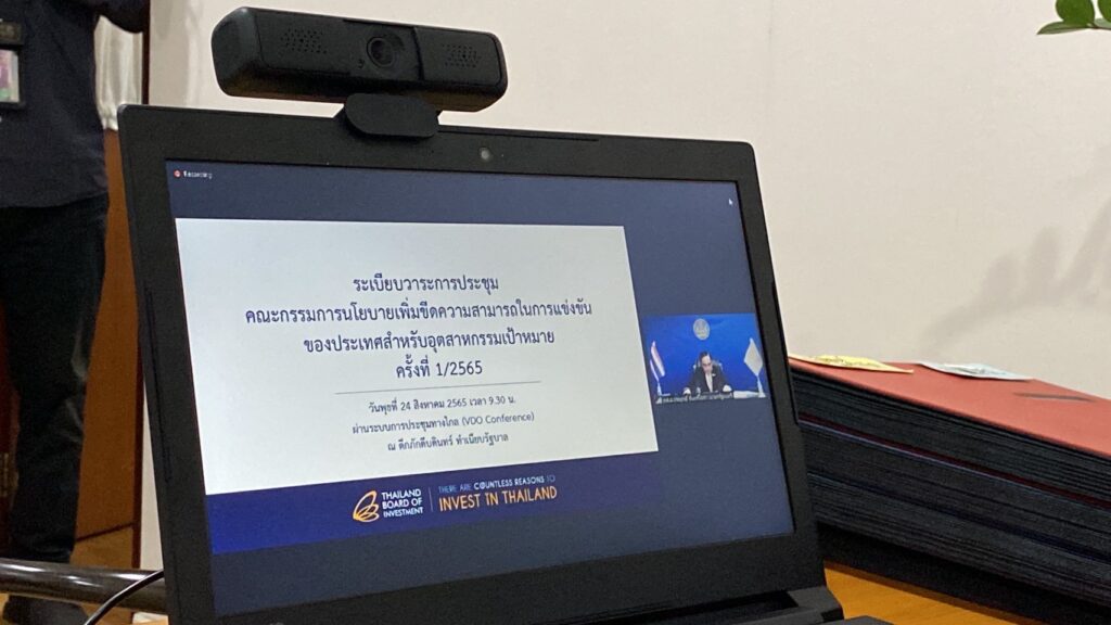 ผู้สื่อข่าวรายงานว่า พล.อ.ประยุทธ์ จันทร์โอชา นายกรัฐมนตรี และรัฐมนตรีว่าการกระทรวงกลาโหม เป็นประธานการประชุมคณะกรรมการนโยบายเพิ่มขีดความสามารถในการแข่งขันของประเทศสำหรับอุตสาหกรรมเป้าหมาย ครั้งที่ 1/2565 ผ่านระบบวิดีโอคอนเฟอร์เรนท์