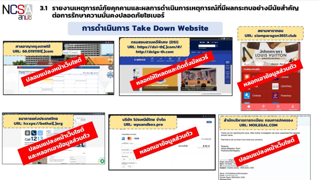 พล.อ.ประวิตร วงษ์สุวรรณ รองนายกรัฐมนตรี เป็นประธานการประชุม คณะกรรมการการรักษาความมั่นคงปลอดภัยไซเบอร์แห่งชาติ (กมช.) ผ่านสื่ออิเล็กทรอนิกส์ โดยที่ประชุมได้รับทราบ รายงานเหตุการณ์ภัยคุกคามที่มีผลกระทบต่อการรักษาความมั่นคงปลอดภัยไซเบอร์ ซึ่งมี 1 เม.ย.-31ก.ค.65 จำนวน 138 เหตุการณ์ ส่วนใหญ่ เป็นเว็บการพนัน และการหลอกลวงประชาชน ซึ่งได้ดำเนินการปิดเว็บดังกล่าวแล้ว พร้อมมีการเฝ้าระวัง อย่างต่อเนื่องต่อไป และรับทราบรายงานผลการลงนามบันทึกความเข้าใจของ สำนักงานคณะกรรมการการรักษาความมั่นคงปลอดภัยไซเบอร์แห่งชาติ (สกมช.) กับองค์กรภายในประเทศและต่างประเทศแล้ว ได้แก่ กองบัญชาการกองทัพไทย ,คณะอธิการบดีแห่งประเทศไทย ,สาธารณรัฐประชาชนจีน ,ประเทศอิสราเอล และบริษัท หัวเว่ย เทคโนโลยี (ประเทศไทย) จำกัด