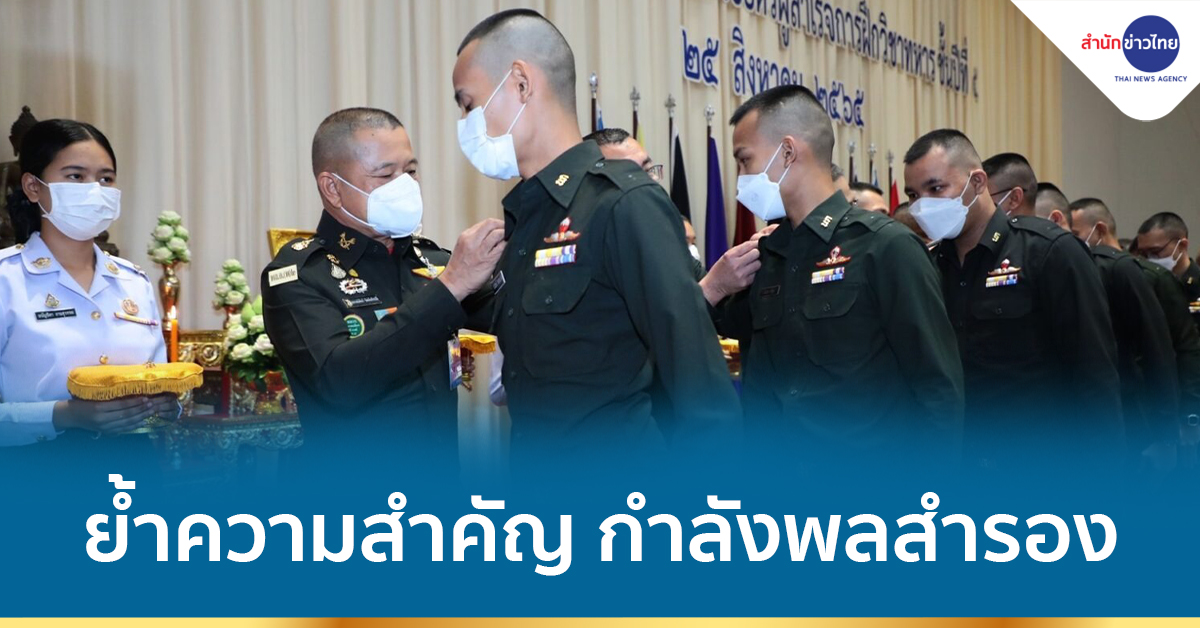 สโมสรทหารบก 25 ส.ค.-ผบ.ทบ.ประดับเครื่องหมายยศร้อยตรี ประจำปี 65 ย้ำความสำคัญของกำลังพลสำรอง แสดงถึงความรับผิดชอบต่อกองทัพ-ปท.