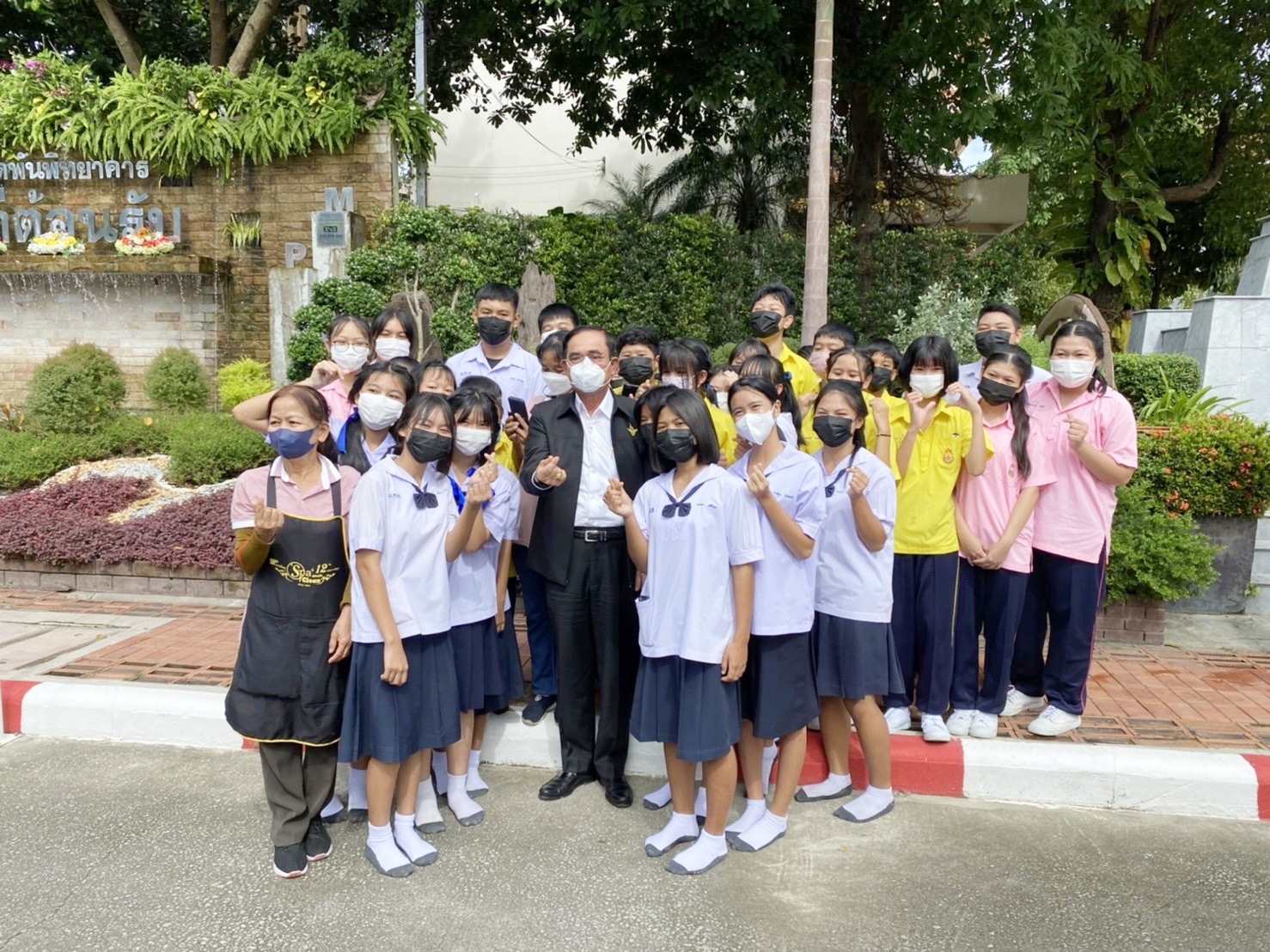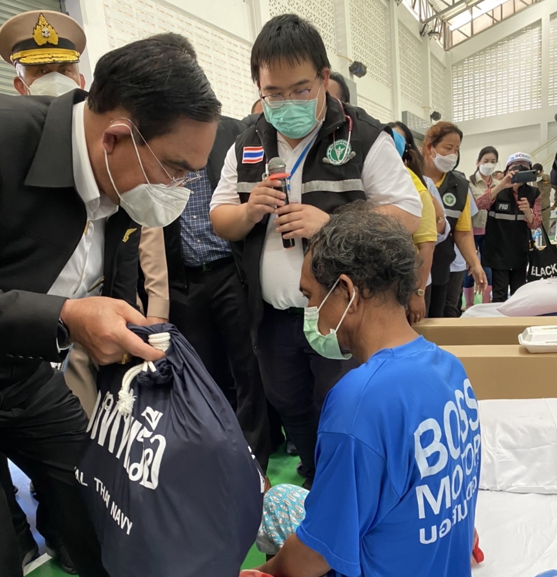 ทั้งนี้ ก่อนที่ พล.อ.ประยุทธ์ จะเดินทางกลับ ได้ถ่ายภาพร่วมกับผู้ปฏิบัติงานและอาสาสมัครและมีชาวบ้านนำพวงมาลัยดอกไม้ดาวเรืองมามอบให้กำลังใจที่บริเวณหน้าศูนย์พักพิง โดยนายกรัฐมนตรีได้กล่าวพร้อมกับเอามือตีอกระบุว่า ซึ้งใจ ฝากขอบคุณขอบคุณทุกคน ๆ ขณะนี้กังวลความเดือดร้อนของประชาชนมากกว่า ในฐานะรัฐมนตรีว่าการกระทรวงกลาโหมและคณะรัฐมนตรี เมื่อขึ้นรถ พล.อ.ประยุทธ์ กล่าวว่า ต้องการความร่วมมือ พร้อมกดกระจกลงและชูมือแสดงสัญลักษณ์ไอเลิฟยู ซึ่งมีชาวบ้านตะโกนว่า “ลุงตู่สู้ ๆ”.-สำนักข่าวไทย