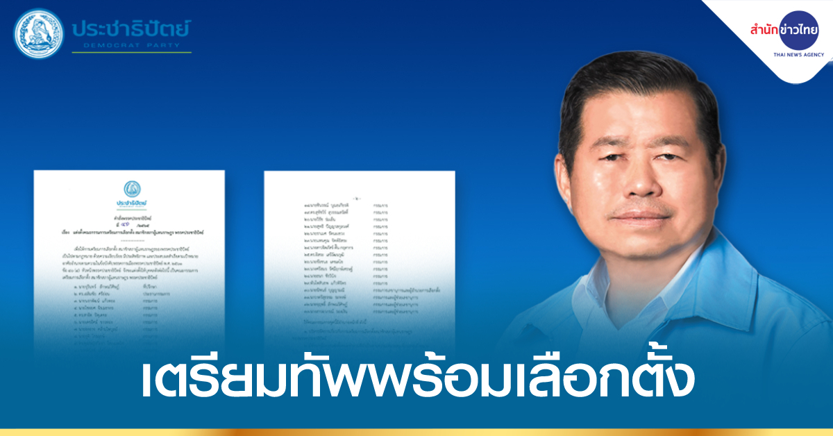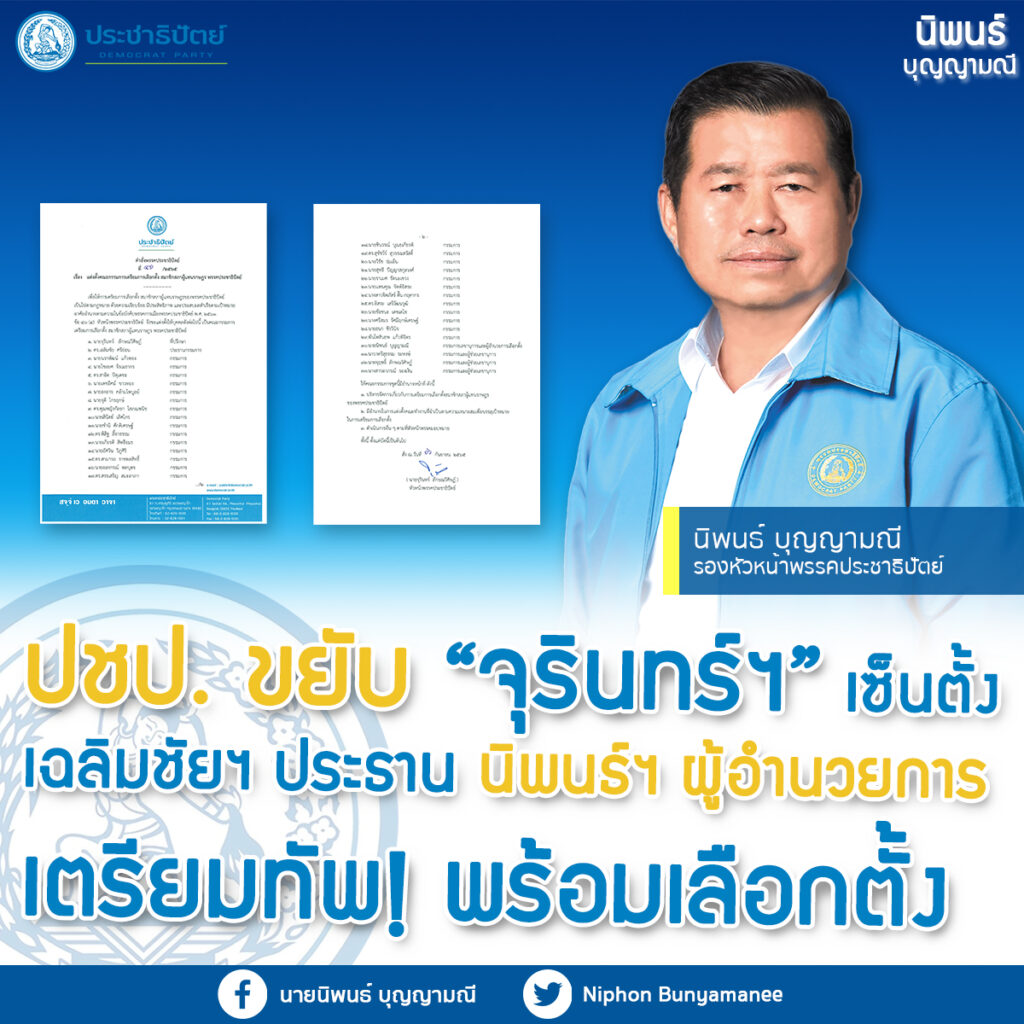 กรุงเทพฯ 16 ก.ย. – ปชป.ขยับ “จุรินทร์” เซ็นตั้ง “เฉลิมชัย” ประธาน “นิพนธ์” ผู้อำนวยการ เตรียมทัพพร้อมเลือกตั้ง