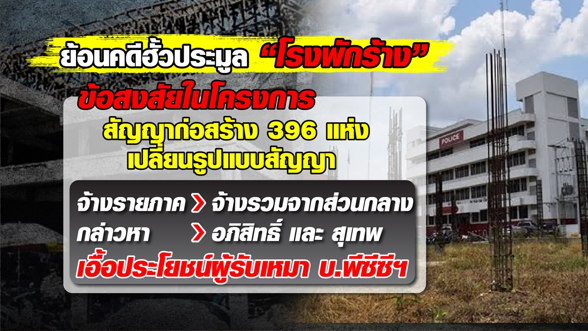 ประเด็นข้อสงสัย คือ เริ่มโครงการเดือนมีนาคม 2554 แต่ผ่านไปเกือบ 2 ปี ใกล้จะสิ้นสุดสัญญาปี 2556 ปรากฏว่า การก่อสร้างไม่คืบหน้า ผู้รับเหมาทิ้งงาน ทำให้ตำรวจหลายโรงพักต้องไปเช่าที่อื่นเป็นสถานที่ทำงาน บางที่ถูกทิ้งร้างไปเลย บางที่เหลือแค่โครงสร้าง มีแค่เสา