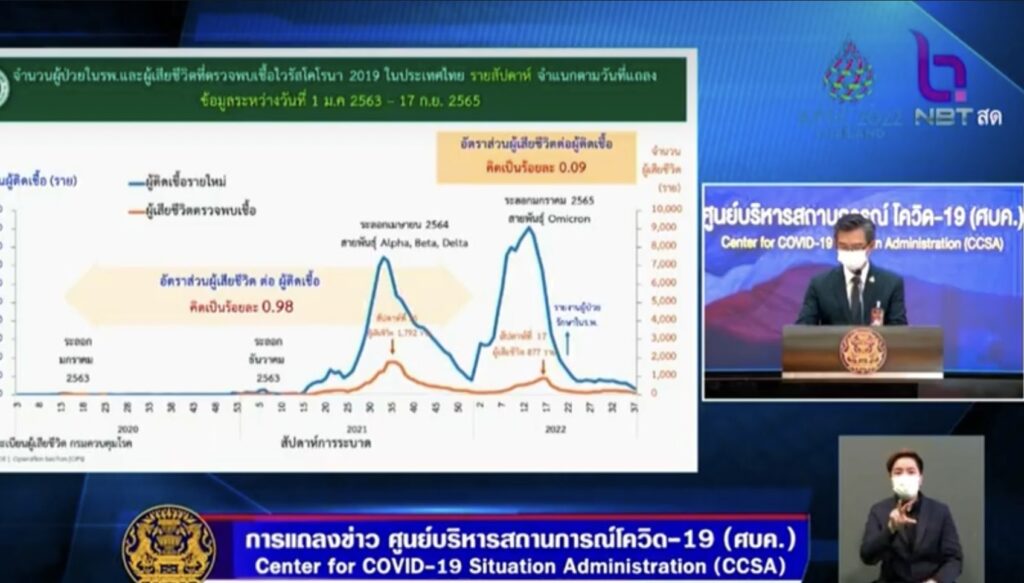นพ.ทวีศิลป์ วิษณุโยธิน โฆษกศูนย์บริหารสถานการณ์การแพร่ระบาดของโรคติดเชื้อไวรัสโคโรนา 2019 หรือ ศบค. ที่มี พล.อ.ประวิตร วงษ์สุวรรณ รองนายกรัฐมนตรี รักษาการนายกรัฐมนตรี เป็นประธานในการประชุม โดยที่ประชุม พล.อ.สุพจน์ มาลานิยม เลขาธิการสภาความมั่นคงแห่งชาติ ได้รายงานภาพรวมการแพร่ระบาดของโรคดีขึ้น ผู้ติดเชื้อรายใหม่ และผู้เสียชีวิตลดลง และกระทรวงสาธารณสุขได้ปรับให้โควิด-19 จากโรคติดต่ออันตรายเป็นโรคติดต่อเฝ้าระวัง