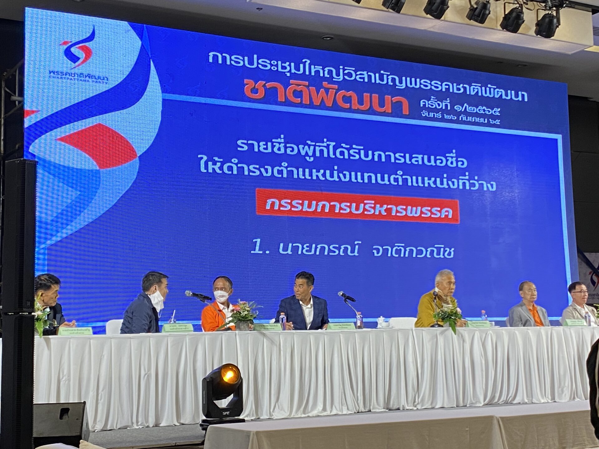 ผู้สื่อข่าวรายงานว่า การประชุมใหญ่วิสามัญของพรรคชาติพัฒนาในวันนี้ (26 ก.ย.) มีวาระการเปลี่ยนชื่อพรรคเพื่อนำเข้าพิจารณาในที่ประชุม หลังจากที่มีการแถลงข่าวความร่วมมือในการทำงานทางการเมือง และด้านเศรษฐกิจระหว่าง นายสุวัจน์ ลิปตพัลลภ ประธานพรรคชาติพัฒนา และนายกรณ์ จาติกวณิช หัวหน้าพรรคกล้า เมื่อต้นเดือนกันยายนที่ผ่านมา โดยที่ประชุมใหญ่วิสามัญพรรคชาติพัฒนา ครั้งที่ 1 / 2565 ที่ จ. นครราชสีมา มีมติเปลี่ยนชื่อพรรค เป็น “ชาติพัฒนากล้า” พร้อมปรับโครงสร้างคณะกรรมการบริหารพรรค โดยที่นายเทวัญ ลิปตพัลลภ ยังดำรงตำแหน่งหัวหน้าพรรคอยู่ พร้อมเสนอชื่อ นายกรณ์ จาติกวณิช เป็นกรรมการบริหารพรรค ขณะที่นายกรณ์ ได้นำอดีตสมาชิกพรรคกล้ากว่า 40 คน เปิดตัวเข้าสมัครเป็นสมาชิกพรรค