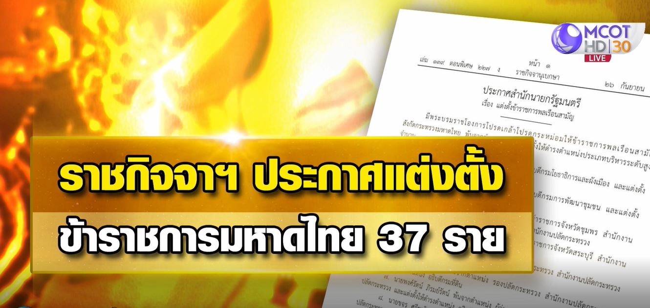 ราชกิจจาฯ ประกาศแต่งตั้งข้าราชการมหาดไทย 37 ราย