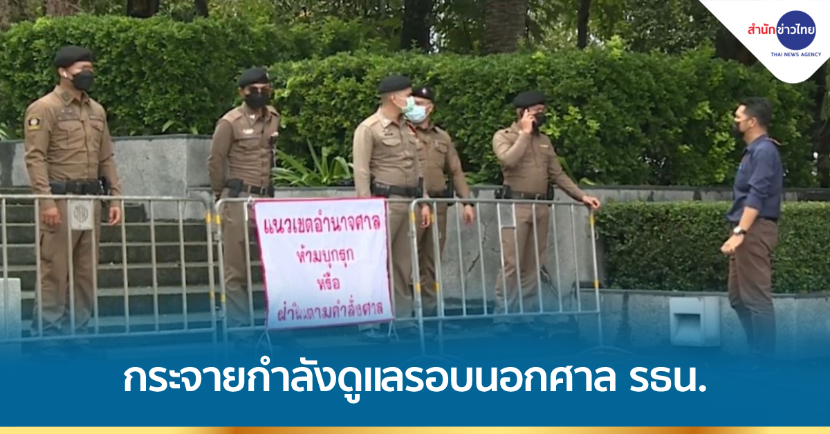 ส่วนรอบนอกศาลรัฐธรรมนูญ ตำรวจจากกองบังคับการตำรวจนครบาล 2 และจาก สน.ทุ่งสองห้อง 300 นาย กระจายกำลังดูแลทั้งทางขึ้นรถ อาคารเอ และบันไดหน้าลานธงชาติอาคารเอ โดยเจ้าหน้าที่ศาลนำแนวรั้วมากั้นไว้ 2 แนว แนวแรกห่างจากด้านหน้าอาคารเอ 10 เมตร ส่วนแนวที่ 2 ไกลออกมาจากด้านหน้าอาคารเอ 50 เมตร พร้อมติดป้าย “แนวเขตอำนาจศาลห้ามบุกรุกหรือฝ่าฝืนตามคำสั่งศาล” และยังมีการเตรียมพร้อมรถเครื่องขยายเสียงของตำรวจไว้ที่บริเวณลานจอดรถด้านหน้าศาลรัฐธรรมนูญด้วย