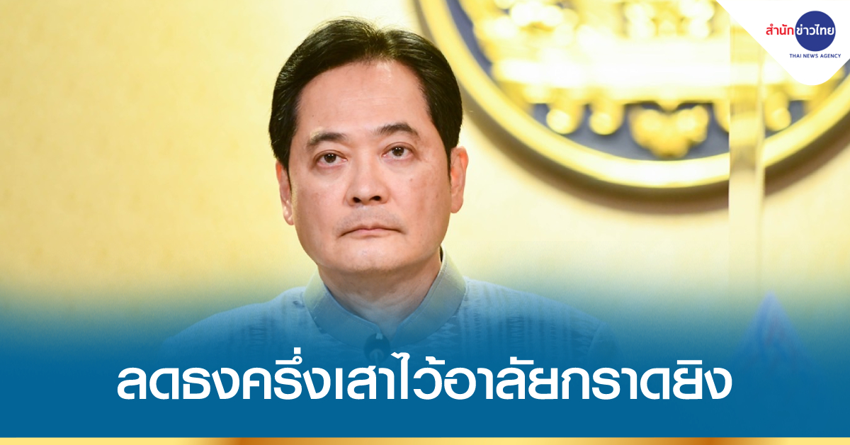 กรุงเทพฯ 6 ต.ค. – นายกฯ ขอให้ทุกส่วนราชการทั่วประเทศ ลดธงครึ่งเสา 1 วัน เป็นกรณีพิเศษ เพื่อแสดงความอาลัยต่อเหตุการณ์ที่ จ.หนองบัวลำภู