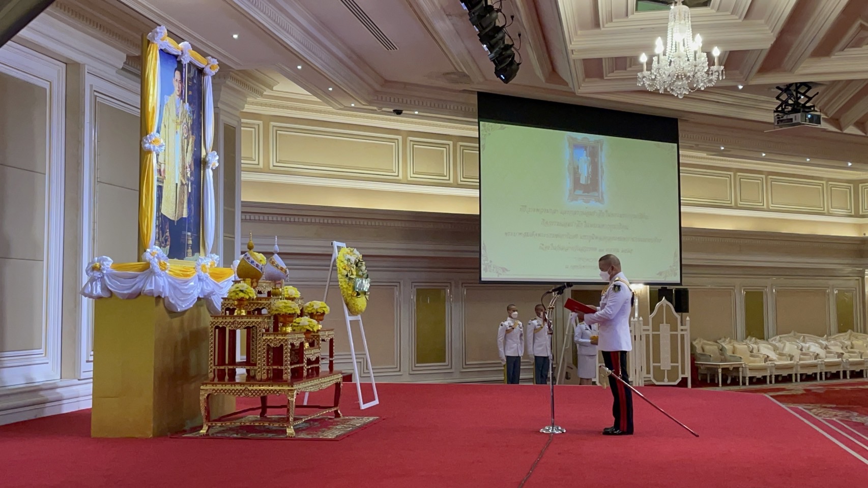 “พระองค์ทรงเปี่ยมด้วยพระมหากรุณาธิคุณอย่างหาที่สุดมิได้ ประชาชนดำรงอยู่ด้วยความสุขสงบร่มเย็นบนพื้นฐานแห่งความพอเพียงมาจนถึงทุกวันนี้ ดังนั้นพระองค์จึงทรงเป็นที่เคารพรักและเทิดทูนอย่างสูงสุดของเหล่าทหาร และประชาชนทุกหมู่เหล่าอย่างไม่มีวันเสื่อมคลาย กองบัญชาการกองทัพไทย ขอน้อมรำลึกในพระมหากรุณาธิคุณอันยิ่งใหญ่นี้ จะน้อมนำพระราชปณิธานที่ทรงมีต่อทหารในการทำหน้าที่เป็นทั้งนักรบและนักพัฒนาไปพร้อมกับการป้องกันประเทศ การปกป้องสถาบันหลักของชาติ รวมทั้งน้อมนำแนวพระราชดำริ พระราชดำรัส พระบรมราโชวาทที่พระราชทานไว้ในโอกาสต่าง ๆ มาเป็นแนวทางในการปฏิบัติราชการ และการดำรงตนของข้าราชการและครอบครัวตลอดไป” ผู้บัญชาการทหารสูงสุด กล่าว