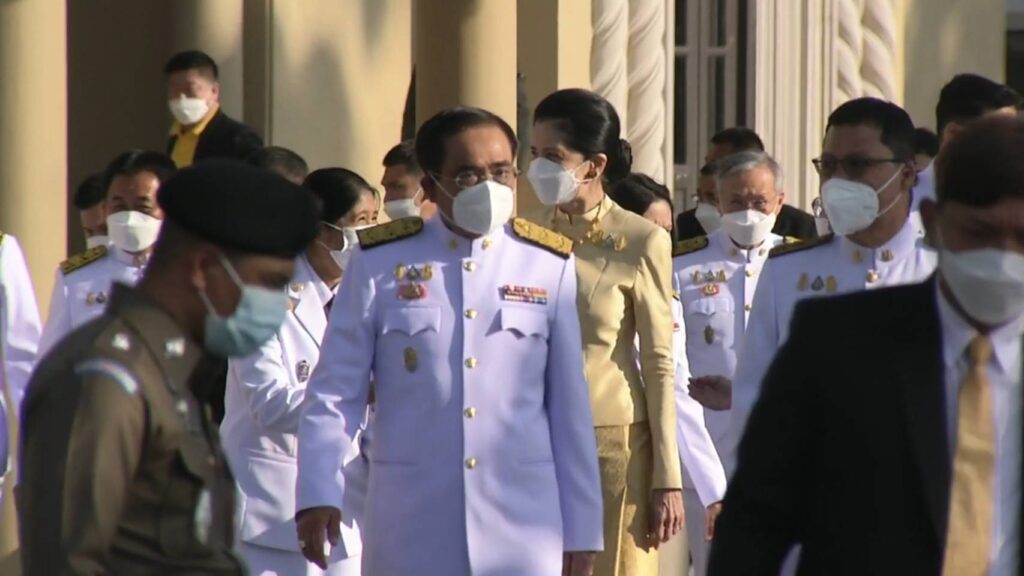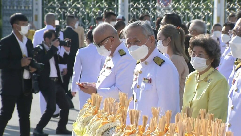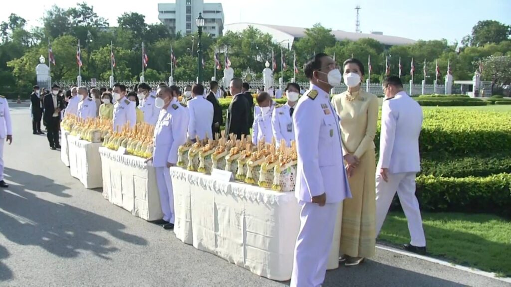 เมื่อนายกรัฐมนตรีและภริยาเดินทางถึงบริเวณตึกสันติไมตรี (หลังนอก) พระสงฆ์ในพิธี จำนวน 10 รูป ขึ้นนั่งอาสนะสงฆ์ นายกรัฐมนตรีจุดธูปเทียนบูชาพระรัตนตรัย จุดธูปเทียนเครื่องทองน้อยหน้าพระบรมฉายาลักษณ์ พระบาทสมเด็จพระบรมชนกาธิเบศร มหาภูมิพลอดุลยเดชมหาราช บรมนาถบพิตร เจ้าหน้าที่อาราธนาศีล พระสงฆ์ให้ศีลและเจริญพระพุทธมนต์ จากนั้น นายกรัฐมนตรีถวายผ้าไตรพระสงฆ์ จำนวน 10 รูป นายกรัฐมนตรีและภริยา พร้อมด้วยคณะรัฐมนตรี ถวายเครื่องไทยธรรม พระสงฆ์สดับปกรณ์ พระสงฆ์สวดอนุโมทนา นายกรัฐมนตรีกรวดน้ำรับพร แล้วกราบลาพระรัตนตรัย และถวายความเคารพหน้าพระบรมฉายาลักษณ์พระบาทสมเด็จพระบรมชนกาธิเบศร มหาภูมิพลอดุลยเดชมหาราช บรมนาถบพิตร