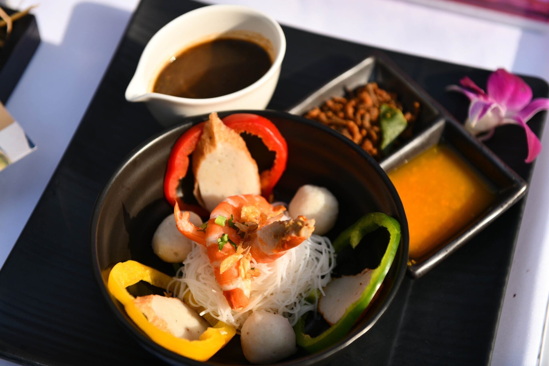 เชฟชุมพล ซึ่งเป็นผู้รับผิดชอบ เปิดเผยว่า วัตถุดิบที่ใช้จะเป็นของไทยทั้งหมดมาจากทั่วประเทศ เพื่อกระจายรายได้สู่ท้องถิ่น ใช้แนวคิด BCG โมเดล โดยแขกวีไอพีที่จะเข้าร่วมงานเลี้ยงมีประมาณ 400 คน มีอาหาร 4 คอร์ส ซึ่งมีอาหารขึ้นชื่อและเป็นที่รู้จักของไทย ทั้งข้าวซอย ต้มข่าไก่ ต้มยำ ขนมหม้อแกงเผือกภูเขา ผักจากโครงการหลวง ไข่ปลาคาร์เวียจากโครงการหลวง ดอยอินทนนท์ เนื้อจากโพนยางคำ ปลากุเลาจากตากใบ รวมถึงเครื่องดื่มเป็นไวน์ไทยจากเขาใหญ่ โดยจะมีแพลนต์เบส สำหรับแขกที่ไม่รับประทานเนื้อสัตว์ ใช้ทีมงานทั้งหมด 300 คนในการรังสรรค์เมนูต่าง ๆ ขณะที่พล.อ.ประยุทธ์ จันทร์โอชา นายกรัฐมนตรีและรัฐมนตรีว่าการกระทรวงกลาโหมได้ร่วมชิมอาหารจากโครงการดังกล่าว ซึ่งจะเสิร์ฟมื้อเที่ยงครม.วันนี้ด้วย.-สำนักข่าวไทย