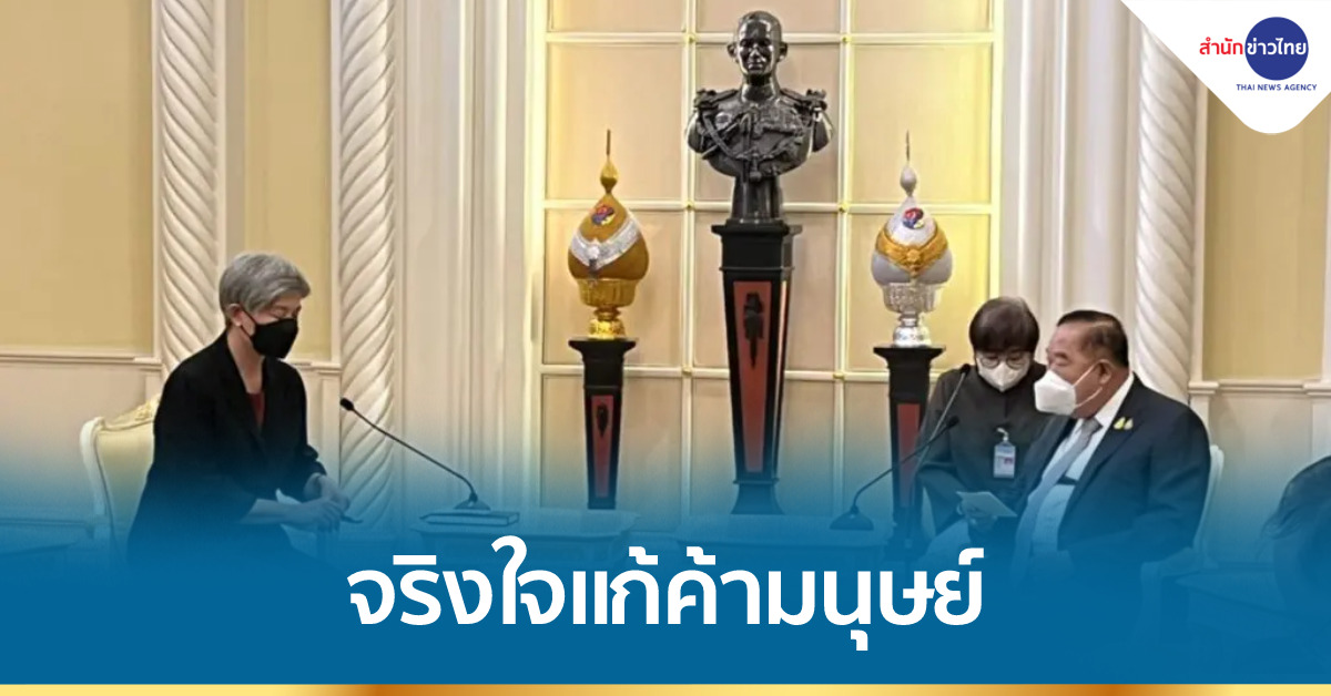 ทำเนียบ 2 พ.ย.-“พล.อ.ประวิตร” ต้อนรับ รัฐมนตรีต่างประเทศออสเตรเลีย พร้อมเป็นสักขีพยานลงนาม MOU ตั้งศูนย์ความเป็นเลิศฯ ย้ำจุดยืนไทยจริงใจแก้ค้ามนุษย์ ขั้นเด็ดขาด ชื่นชม “อภิญญา” สร้างชื่อเสียง รับรางวัล TIP Report Hero